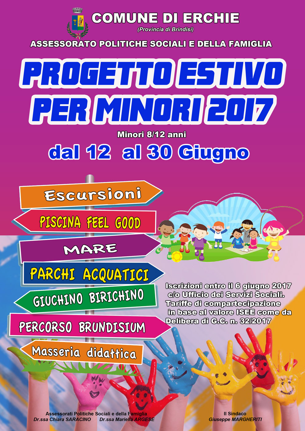 Comune di Erchie - Piazza delle Rimembranze - 72020 Erchie (BR) - c.f. 80000960742- IBAN: IT18V0526279748T20990001211 - Telefono 0831.768300 - Fax 0831.768399 - pec: protocollo.comune.erchie@pec.rupar.puglia.it
