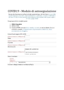 COVID-19. FASE 2. MODULO AUTOSEGNALAZIONE RIENTRO IN PUGLIA