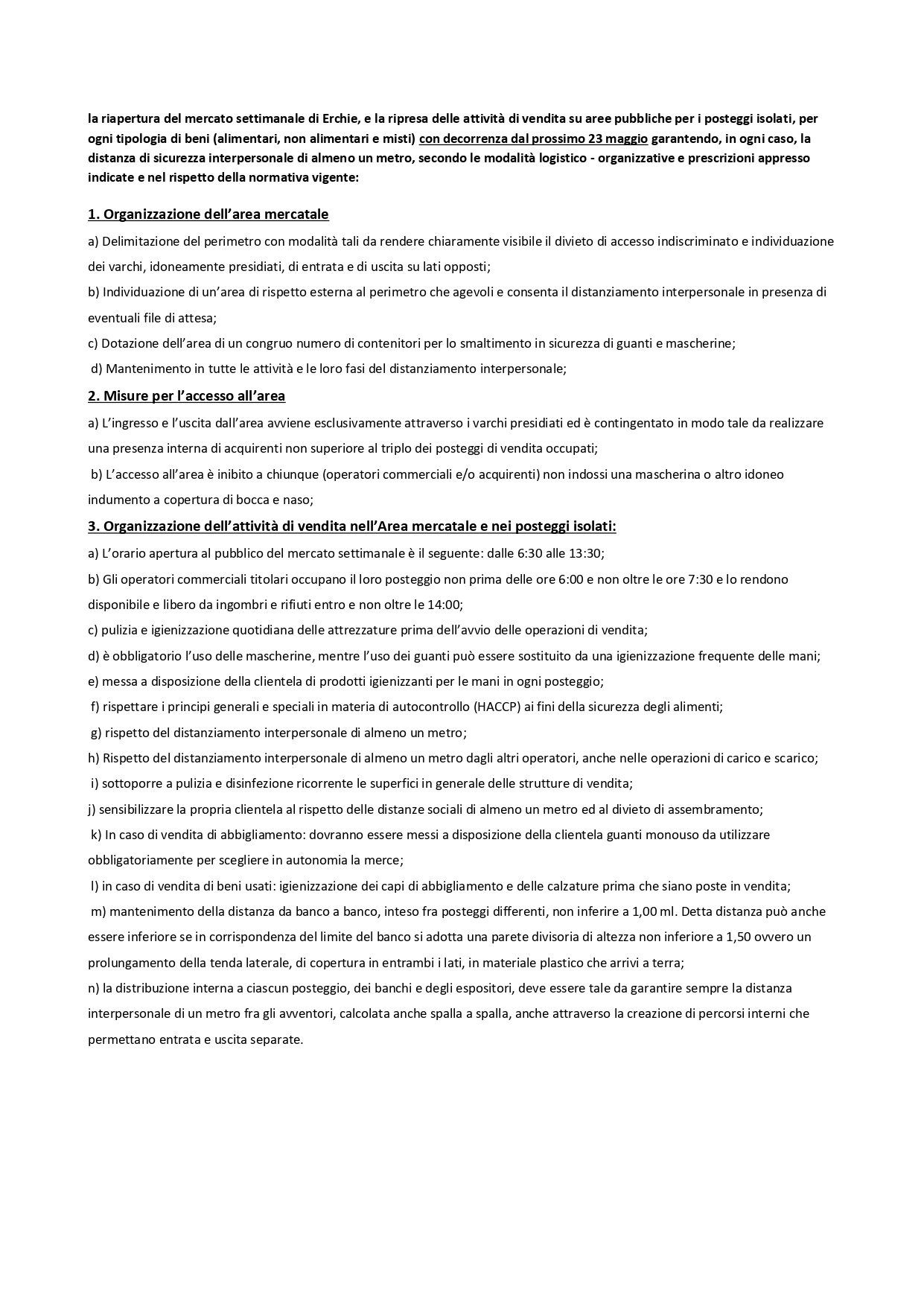Con propria ordinanza n 57 del 21 maggio 2020 ” Disposizioni per la riapertura del mercato settimanale per tutti i settori e per la ripresa dell’attivita del commercio su aree pubbliche”