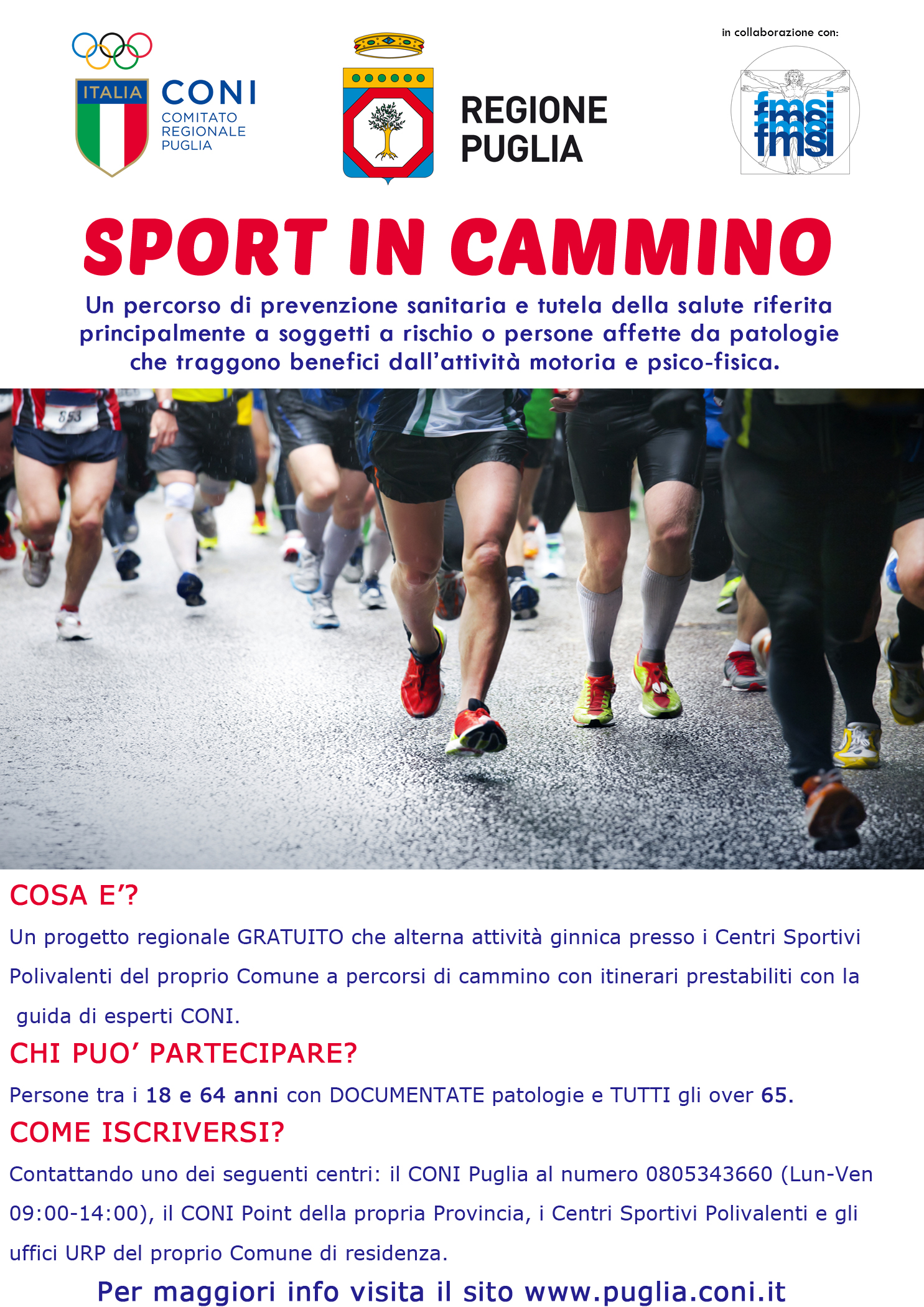 L’Amministrazione Comunale rende noto il progetto “Sport in Cammino” su iniziativa del Coni e della Regione Puglia