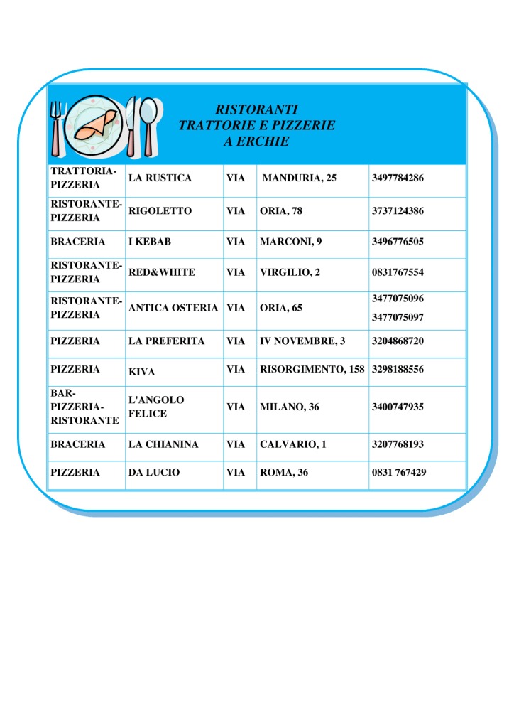 Comune di Erchie - Piazza delle Rimembranze - 72020 Erchie (BR) - c.f. 80000960742- IBAN: IT18V0526279748T20990001211 - Telefono 0831.768300 - Fax 0831.768399 - pec: protocollo.comune.erchie@pec.rupar.puglia.it